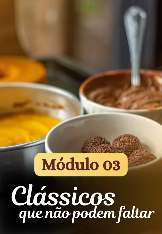 Também ensino técnicas essenciais para evitar erros comuns, organizar sua produção, precificar corretamente e montar um cardápio que faça sentido para sua realidade.