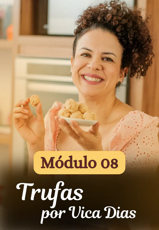 Ficamos honrados em ter um módulo inteiro ministrado por ela: “Trufas por Vica Dias”. Receitas deliciosas sem glúten, sem açúcar e sem lácteos, ou seja veganas também.